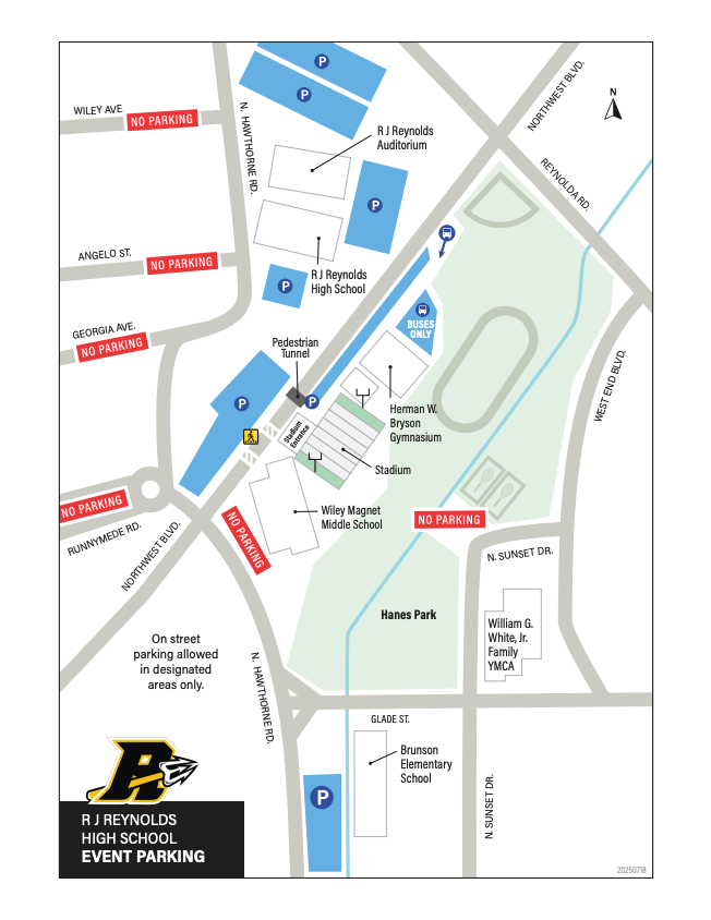 Game tickets must be purchased separately and in advance here. Free parking is available at RJ Reynolds High School, Wiley Middle School, and Brunson Elementary School. See the parking locations map and the clear bag policy for more information.